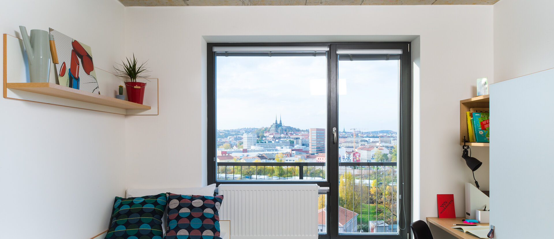 Moderní architektura, velkorysé výhledy a komunita, která umí zabrat i vypnout. Ať už rozjíždíte kariéru nebo dokončujete diplomku, DOMEQ se přizpůsobí vašemu rytmu — klid na soustředění, když ho potřebujete, i společenská energie, když ji chcete.