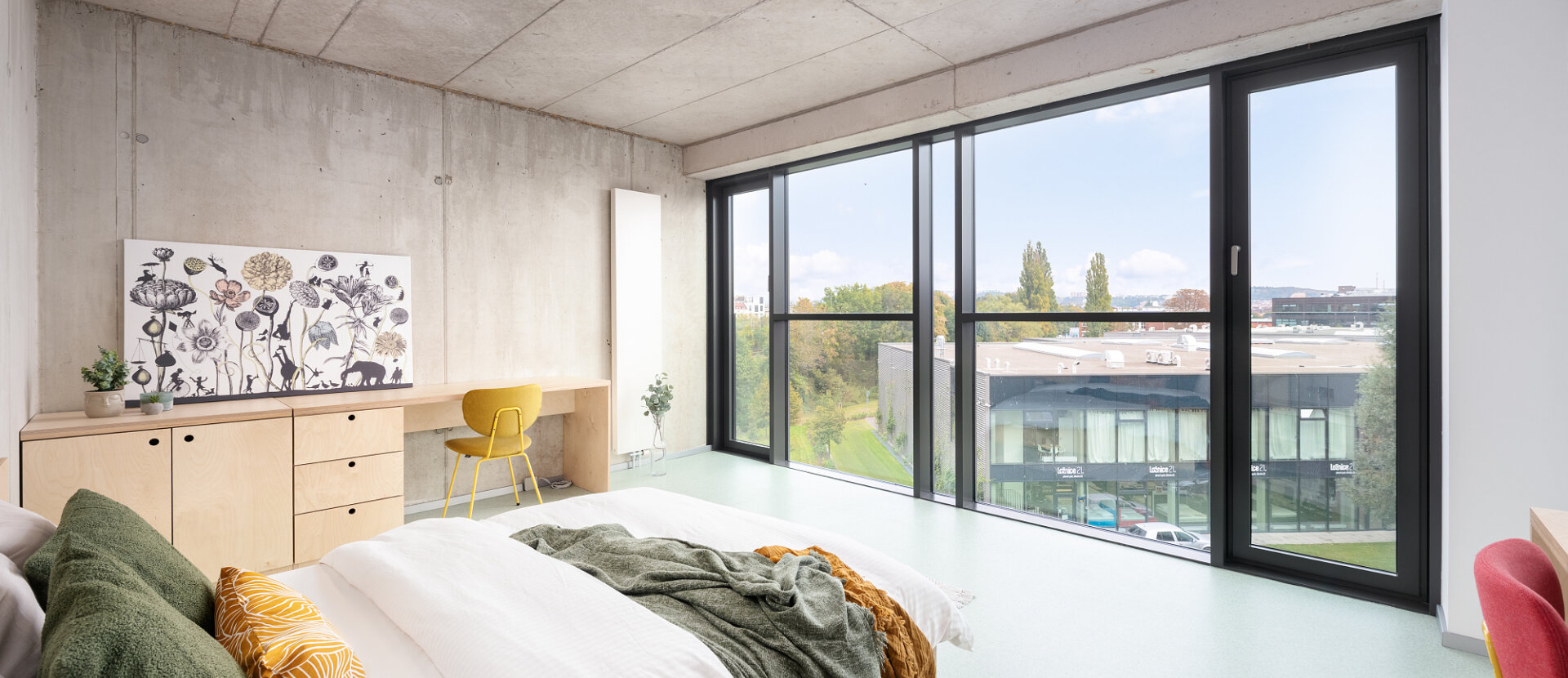 Vyberte si ubytování v jednom ze 159 jednotek od nultého až po dvanácté patro. Ubytovat se můžete v jednotce o menší ploše od 21m2 až po prostorné a vzdušné třípokojové apartmány o velikosti 72m2. Vše důležité vyřídíte pohodlně pěšky, ale nabízíme i půjčovnu kol pro výlety na nedaleké cyklostezce. Pokud vlastníte auto, zcela určitě uvítáte dostatek parkovacích míst kolem domu. Prezentace, seminárky či klidně diplomovou práci hravě napíšete v místní studovně. A o každodenní zábavu se postará třeba billiard, Playstation 4 a kino s promítacím plátnem ve společenské místnosti nebo posilovna a venkovní hřiště.